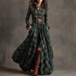 Ins Plaid Print Long-Sleeved Dress Fashion Pockets Collared Buttons Shirt Long Dresses Retro Women's Clothing
